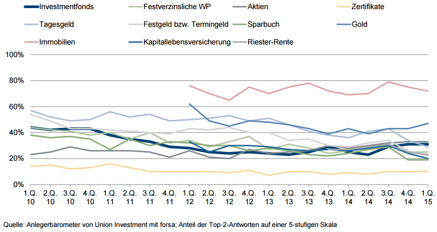 Attraktivität verschiedener Assetklassen bei Anlegern: Fonds erstmals vor Tagesgeld