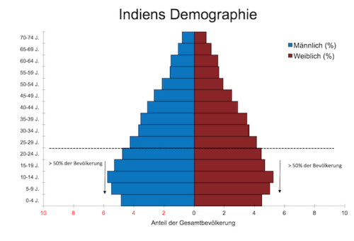 Für zwei tragende Säulen der indischen Wirtschaft – den Konsum und die demografische Entwicklung – werden in den Prognosen ermutigende Wachstumsraten genannt.