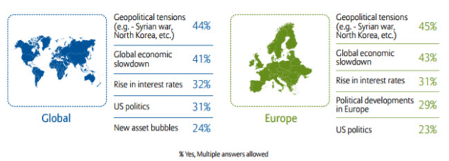 Die Geopolitik bereitet professionellen Anlegern in diesem Jahr das größte Kopfzerbrechen. Sorgen bereitet ihnen zudem die Aussicht eines Wirtschaftsabschwungs und eine mögliche Zinsanhebung.