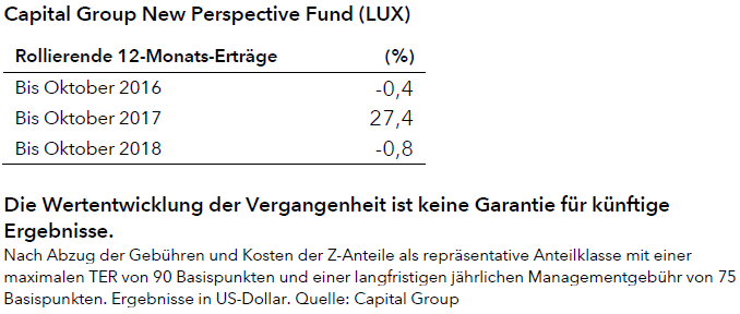 Seit der Auflegung im März 1973 investiert New Perspective in Unternehmen, die von Veränderungen des Welthandels sowie vom wirtschaftlichen und politischen Wandel profitieren. Dabei ist für uns entscheidend, wo ein Unternehmen geschäftlich tätig ist und nicht, wo es seinen Hauptsitz hat. Das Ziel der Strategie ist heute so interessant wie vor 45 Jahren. Seitdem haben unsere Portfoliomanager viele Krisen des Welthandels erlebt. Schon oft war die Lage ähnlich wie heute, auch wenn die Herausforderungen und Chancen jedes Mal anders waren.