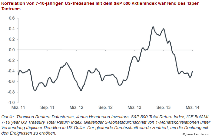 Auslöser des Taper Tantrums war die Rede des Fed-Vorsitzenden Ben Bernanke vom Mai 2013 vor dem Kongress, in der er eine Reduzierung der Anleihekäufe durch die US-Notenbank in Aussicht stellte. Daraufhin kam es zu einer Fehleinschätzung der geldpolitischen Absichten der Fed durch die Märkte, die davon ausgingen, dass schon bald mit Zinserhöhungen zu rechnen sei. Aufgrund der davon ausgelösten Zinsängste gingen nicht nur die Kurse von Anleihen, sondern auch von Aktien auf Talfahrt (positive Korrelation). Im weiteren Jahresverlauf stellte sich die normale negative Korrelation jedoch wieder ein.