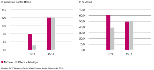 Die Mittelschicht legt grossen Wert auf Sicherheit – des Arbeitsplatzes sowie persönliche Sicherheit. Neu gewählte Regierungen dürften deshalb versuchen, die nationale Wirtschaft durch Schaffung von Arbeitsplätzen, höhere Löhne und allenfalls durch Regulierung oder Besteuerung von Industrien zu stärken, die als «Jobkiller» gelten. Sie werden wahrscheinlich bestrebt sein, die Prosperität der Mittelklasse wiederherzustellen, in die nationale Sicherheit zu investieren und den privaten Konsum anzukurbeln. Bei Sektoren und Unternehmen, die von einer solchen Politik profitieren, sind somit potenziell steigende Umsätze, Erlöse und Marktbewertungen zu erwarten.