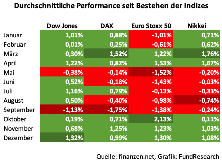 Es ist ein altbekanntes Phänomen – und doch erstaunt es immer wieder: In den letzten Tagen eines Jahres, bevor zum Jahreswechsel die Korken knallen, dürfen Anleger bestaunen, wie internationale Aktien-Indizes eine Kursrakete zündet – um nach dem Neujahrskater wieder auf den gefrorenen Boden der Realität zurückzufallen. Natürlich gibt es auch Ausnahmejahre. Doch tatsächlich ist der Dezember ein Monat, in dem auch Börsenhändler in nichtchristlichen Ländern in einen weihnachtlichen Kaufrausch verfallen. Selbst in Japan steigen die Börsenkurse im Dezember durchschnittlich um ein Prozent. Spitzenreiter sind hier die USA. Der Dezember ist dort historisch betrachtet der Monat mit der stärkten durchschnittlichen Kurs-Performance.