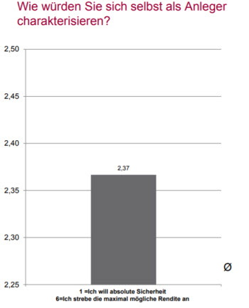 Sie kommt zu dem Ergebnis, deutsche Anleger setzten bei ihrer Investitions-Entscheidung vor allem auf Sicherheit und Verlässlichkeit. Die steigende Inflation ebenso wie die geringen Zinsen scheinen ihnen im Vergleich weniger relevant zu sein.