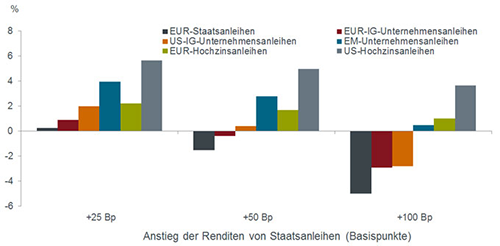Abbildung 4: Szenarioanalyse – geschätzte Erträge für die nächsten 12 Monate in einem Umfeld mit steigenden Rendite