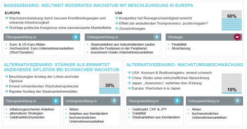 Politische Risiken in den USA: Trump hat viele Versprechungen gemacht und bislang wenige davon eingelöst. Dies gilt insbesondere für die Neuordnung des Gesundheitssystems, den Infrastrukturausbau und Steuersenkungen. Die Wirtschaft erhält jedoch Rückenwind, und den Republikanern dürfte es gelingen, Geschäftsklima und Verbrauchervertrauen zu stärken. Die Gefahr protektionistischer Maßnahmen ist weiterhin gegeben, aber Trump dürfte sich konventioneller verhalten als befürchtet. Fehlender organisatorischer und politischer Zusammenhalt ist kurzfristig ein klarer Risikofaktor.