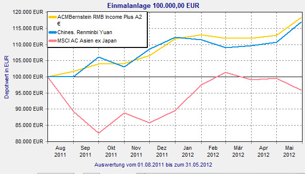 ACMBernstein hat dafür das RMB Income Plus Portfolio (ISIN: LU0633139125) aufgelegt. „Die Fondswährung ist zu 100 Prozent Renminbi“, erklärt Knierim. „Wir bauen das Portfolio aus interessanten, asiatischen Anleihen zusammen.“ Diese nicht in China bzw. Hongkong emittierten Anleihen machen aktuell 96 Prozent des Portfolios aus. Nur etwa vier Prozent sind derzeit in Offshore-RMB-Bonds investiert. „Die Struktur des Rentenmarktes ist zur Zeit nicht optimal“, begründet Knierim die Allokation. Es gebe eine zu starke Konzentration auf Banken als Emittenten. Die Zinsen der investierbaren RMB-Bonds sind momentan sehr niedrig und Kursverluste könnten durch ein Zusammenlaufen mit den chinesischen Onshore Renditen entstehen.Die Allokation der Offshore-RMB-Anleihen soll aber stetig ausgebaut werden. „Wenn es unserer Meinung nach Sinn macht, wollen wir Offshore-RMB-Bonds in Hongkong kaufen“, sagt der zertifizierte Finanzanalyst (CEFA). „Die Zielallokation in RMB-Bonds liegt im gegenwärtigen Marktumfeld bei etwa zehn Prozent.“ In der Länderallokation ist Südkorea aktuell mit einem Anteil von rund 30 Prozent am stärksten vertreten. Dahinter folgen Indonesien mit ca. 16 und die Philippinen mit knapp 15 Prozent. Hongkong stellt mit zehn Prozent die viertstärkste Gewichtung dar. Das ACMBernstein RMB Income Plus Portfolio schaffte im laufenden Jahr einen Gewinn von 6,24 Prozent*. Seit Auflage am 23. Mai 2011 hat es somit bereits 17,82%* Performance erzielt. Der Rücknahmepreis beträgt momentan 12,94 Euro*.
