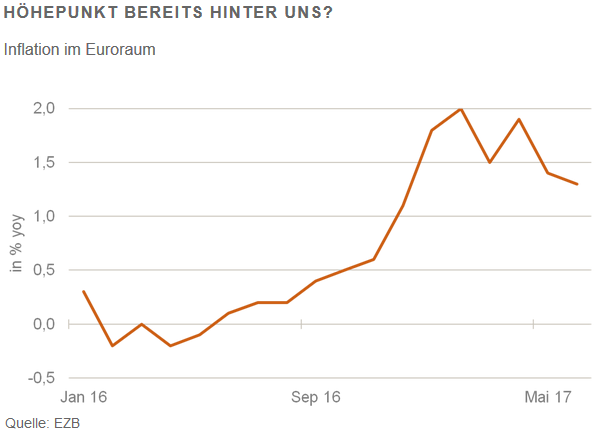 Die Inflation ist nun einmal die wichtigste Variable für die Notenbank. Steigt sie, muss die Notenbank restriktiver werden, geht sie zurück, muss sie ihre Politik lockern. In Europa gilt das uneingeschränkt. In den USA muss die Notenbank daneben auch noch für einen ordentlichen Beschäftigungsstand sorgen.höhepunkt bereits hinter uns?