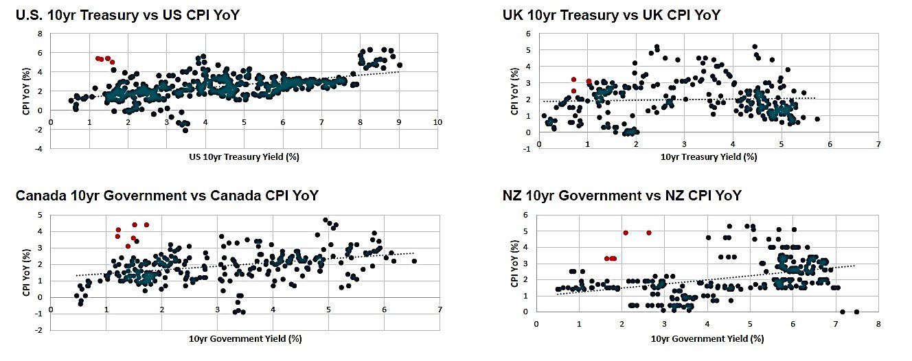 Bezug zwischen Inflation und der Rendite zehnjähriger US-Treasuries