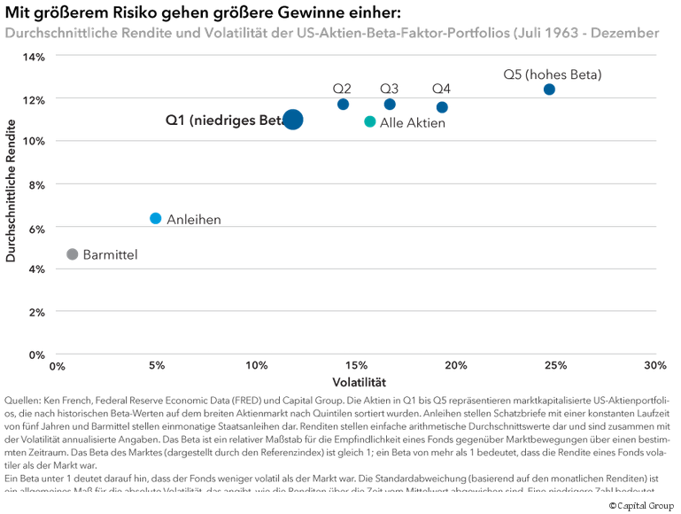 Mithilfe von mehr als fünf Jahrzehnten historischer Daten haben wir festgestellt, dass Aktien mit höherem Beta riskanter und volatiler sind, jedoch höhere Renditen erzielten als Aktien mit niedrigerem Beta. Was nicht überraschend ist. Eine überzeugende neue Perspektive offenbart sich jedoch, wenn man überdenkt, wie Volatilität gemessen wird.