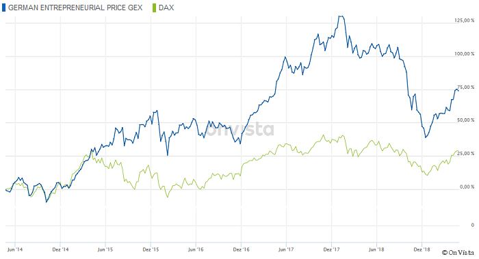 Wie gut Deutschlands Familienbetriebe wirtschaften, lässt sich auch an der Kurs-Entwicklung der börsennotierten Familienunternehmen ablesen. Der Blick auf die Kurs-Performance des „German Entrepreneur Index“, kurz auch GEX genannt, der Aktien von deutschen mittelständischen Familienunternehmen umfasst, die an der Börse Frankfurt im Prime Standard notiert sind, spricht Bände. In den zurückliegenden fünf Jahren hat der GEX rund 75 Prozent an Wert zugelegt. Der DAX schaffte im gleichen Zeitraum gerade einmal 29 Prozent.
