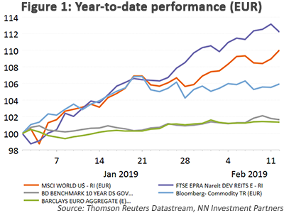 The rise in asset prices continued over the past week as risky assets received support from encouraging news on the trade front: President Trump is willing to extend the deadline for US-China trade talks beyond 1 March if there is scope for a comprehensive deal shortly thereafter. In addition, the risk of another US government shutdown looks to be averted for now. This is a reminder that political risks can go both ways.