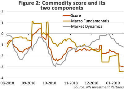 This week, we changed our tactical asset allocation in commodities from a neutral position to a small underweight. Our quant signal has deteriorated significantly over the past two weeks to reach a -3 score. The behavioural component of our signal has continued to deteriorate, while the macro-economic fundamentals of commodities showed no sign of improvement. In particular, the oil-related fundamental indicators weakened as a result of higher inventory levels.
