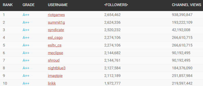 Die größten Kanäle des Game-Streaming-Portals Twitch 2017