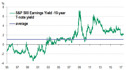 Exhibit 1: Valuations for most asset classes remain high – here the “Fed Model” for the S&P 500 relative to US Treasury bond yields