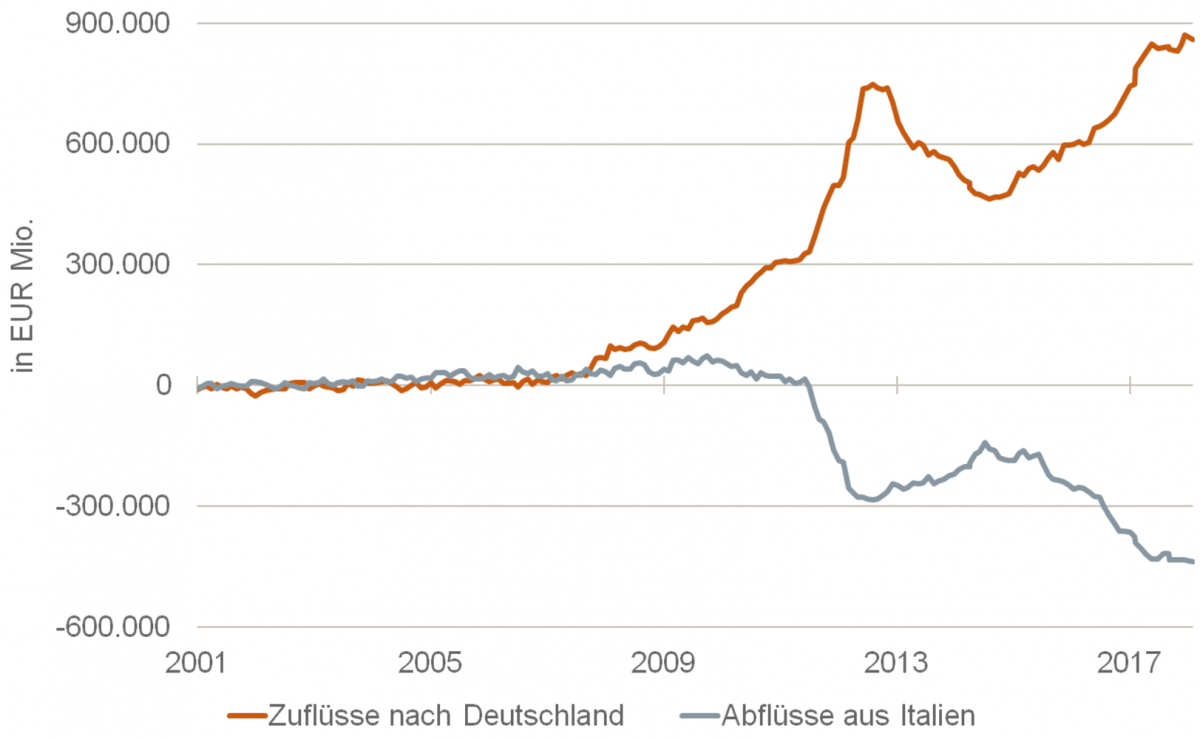 Die Zahlen sind auch deshalb überraschend, weil die EZB etwas ganz anderes prognostiziert hatte. Aus ihrer Sicht waren die Kapitalflüsse innerhalb der Währungsunion eine Folge ihrer Wertpapierkäufe auf den Märkten. Wenn diese Käufe ausliefen, müssten deshalb auch die Kapitalflüsse aufhören. Nun haben sich diese Käufe in den letzten zwölf Monaten von EUR 80 Mrd. auf EUR 30 Mrd. mehr als halbiert. Eine Abnahme der Kapitalflucht ist aber nicht zu erkennen. Noch etwas kommt hinzu: Die letztverfügbaren Zahlen beziehen sich auf den Februar. Das war also noch vor den italienischen Wahlen.