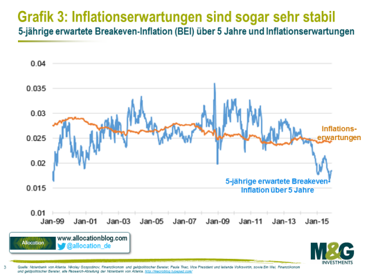 Aus diesem Grund erschließt sich uns nicht, weshalb die Entwicklung der Ölpreise allein angeblich einen derart maßgeblichen Einfluss auf die langfristigen Inflationserwartungen haben sollte.