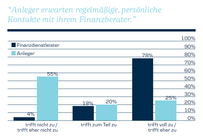 • 78% der Finanzdienstleister gehen davon aus, dass Anleger einen regelmäßigen Kontakt erwarten.