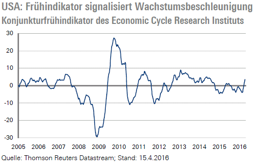 Derzeit signalisiert beispielsweise der Konjunkturfrühindikator des Economic Cycle Research Instituts eine merkliche Wachstumsbeschleunigung in den kommenden Monaten.