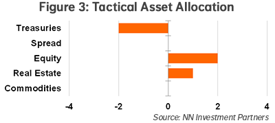 We will enter 2018 with a moderate risk-on stance. Equities are a medium overweight and real estate is a small overweight. German Bunds remain our least preferred asset class with a medium underweight.
