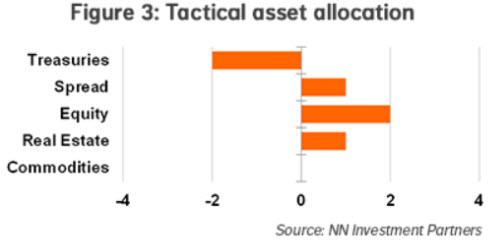 Equities remain our preferred asset class within risky assets. We hold on to a medium overweight for this asset class while leaving both spreads and real estate at a small overweight.