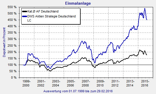 Der größte Fonds der Kategorie Aktienfonds Deutschland bringt 5,2 Milliarden Euro auf die Waage. 2016 muss der DWS Deutschland LC (ISIN: DE0008490962) jedoch Federn lassen: 14,1 Prozent verliert der Fonds. Alleine in den vergangenen sechs Monaten geht es um 7,6 Prozent in den Keller. 2015 lief für das Schwergewicht mit einem Plus von 15,5 Prozent deutlich besser. Mittelfristig trägt der DWS-Fonds die FondsNote 2. Seit seiner Auflegung 1993 erzielt der Fonds eine Wertsteigerung von 487 Prozent. Seine große Schwester, der DWS Investa (ISIN: DE0008474008), beeindruckt mit ganz anderen Zahlen: Seit 1956 legt der Fonds um 20.827,4 Prozent zu. 3,3 Milliarden Euro ist der Oldtimer schwer. Doch Alter schützt vor Krisen nicht: Im laufenden Jahr verliert der Fonds rund 14,4 Prozent. Mehr verliert nur eine weitere Fondsschwester: Der DWS German Equities Typ O (ISIN: DE0008474289). Für den seit 1994 bestehenden Fonds geht es bisher um genau 14,4 Prozent runter. Nichtsdestotrotz, über einen Zeitraum von vier Jahren tragen sowohl der DWS Investa als auch der DWS German Equities ebenfalls die FondsNote 2.