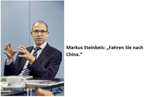 Markus Steinbeis: In China gibt es zwei Arten von Unternehmen: Zum einen gibt es die großen Indizes – dort sind überwiegend Staatsunternehmen gelistet. Diese orientieren sich aber an den Bedürfnissen des Staates und funktionieren nicht nach den uns bekannten Regeln. Wer glaubt, sich daran bereichern zu können, liegt daneben. Dann gibt es innovative Unternehmen, beispielsweise im Medizintechnik -Bereich – dort finden Sie das chinesische Gründertum. Diese Unternehmen rücken sukzessive an die Weltspitze vor und sind auf modernsten Standards. Über solche Entwicklungen können Sie sich am besten vor Ort informieren.