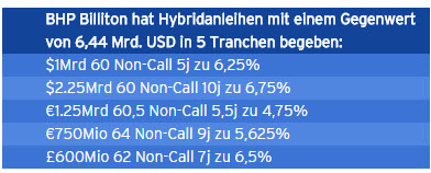 | BHP sucht Hilfe am Anleihenmarkt | |