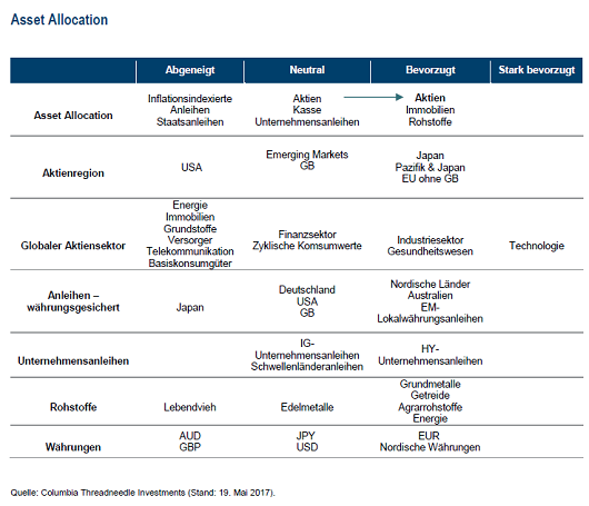 In den USA war Präsident Trump bislang nicht in der Lage, seine geplanten politischen Maßnahmen umzusetzen, was sich teils positiv, teils negativ auf die Aktienmärkte auswirkt. Positiv ist, dass die Wahrscheinlichkeit gravierender Negativeffekte durch die Verfolgung einer stark protektionistischen Agenda gesunken ist. Andererseits stellt sich nun die Frage, ob eine signifikante Senkung der Körperschaftsteuer durchgesetzt werden kann, die der Markt in vielerlei Hinsicht bereits eingepreist hat. Die US-Notenbank Fed hat begonnen, die geldpolitischen Zügel zu straffen, doch es ist unseres Erachtens unwahrscheinlich, dass Zinserhöhungen der Fed zu einer Verkaufswelle an den Aktienmärkten führen werden.