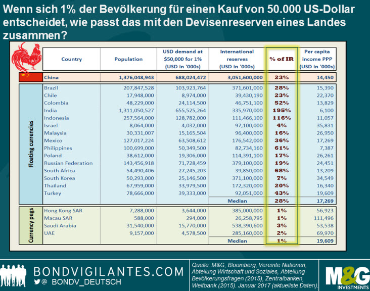 Wenn sich 1% der Bevölkerung für einen Kauf von 50.000 US-Dollar entscheidet, wie passt das mit den vorhandenen Devisenreserven eines Landes zusammen?