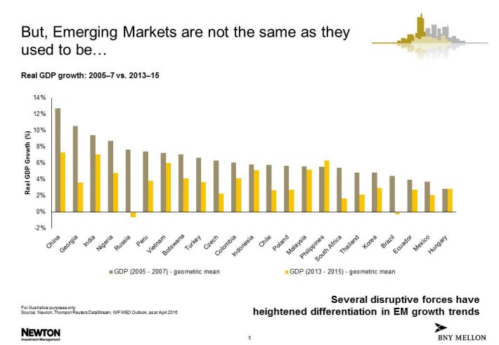 Einig waren sich die Referenten zwar grundsätzlich darin, dass viele der Schwellenländer langfristig von positiven Faktoren profitieren. Dazu zählen die demografische Entwicklung und eine in fast allen Schwellenländern wachsende Mittelschicht. Doch man müsse schon genau hinsehen, wo und wie man investiere. „China ist ein gutes Beispiel dafür, dass man sich auch in stark wachsenden Volkswirtschaften selektiv und sehr intensiv mit verschiedenen Branchen auseinandersetzen muss. Wenn die Flut kommt, werden dort nicht alle Boote gleichzeitig steigen“, sagt Robert Marshall-Lee von Newton Investment Management.