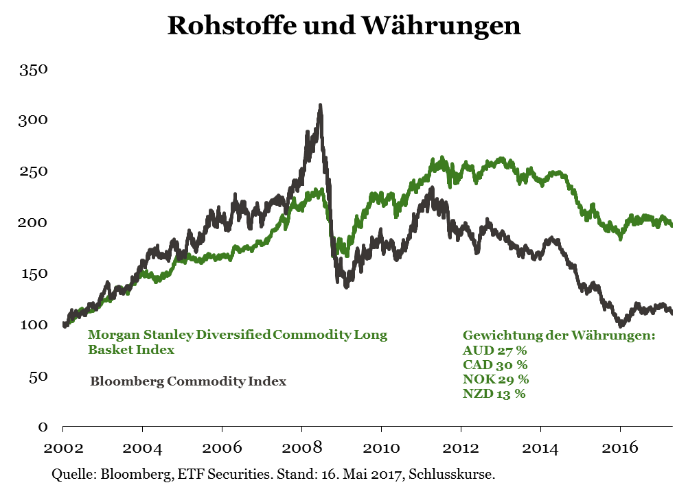 2017 ist für die Rohstoffmärkte kein leichtes Jahr. Natürlich gilt dies auch für Rohstoffwährungen, selbst wenn es sie wesentlich weniger hart trifft, da Devisen als Vermögensklasse nicht so volatil sind. Nach den Zugewinnen im Vorjahr sind Rohstoffe und Rohstoffwährungen seit Jahresanfang 2017 um 5,2 Prozent bzw. 0,2 Prozent gefallen. Rohstoffwährungen halten sich demnach relativ gut, aber die schwache fundamentale Lage ihrer Länder wird sie in den kommenden Monaten einholen.