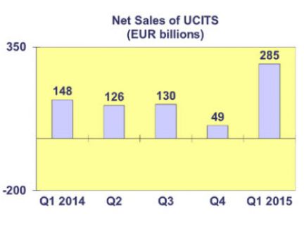UCITS-Fonds aus Europa haben im ersten Quartal 2015 Nettozuflüsse in Höhe von 285 Milliarden Euro verzeichnet – nach 49 Milliarden Euro im Vorquartal.