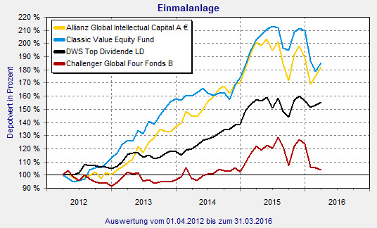 Auch der Classic Value Equity Fund (ISIN: LI0019077903) trägt die FondsNote 1. 2016 gehört der Fonds jedoch bisher zu den größten Verlierern. Aktuell steht er mit 11,6 Prozent in den roten Zahlen. Im März macht er jedoch mit einem Plus von 3,7 Prozent wieder Boden gut. 149,7 Millionen Euro sind in den Fonds investiert, der primär in Aktien mittlerer und großer Unternehmen aus Westeuropa und Nordamerika investiert. Als Value-Fonds sucht er unterbewertete Aktien.