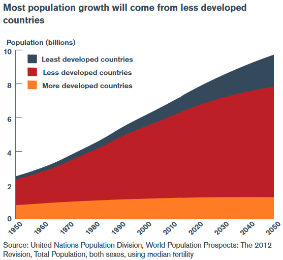 The opportunities for investment, however, are significant and well documented. Supportive demographic trends, such as population growth and a rise of the middle income consumer, are driving demand for a broad range of products and services that those of us in the developed world take for granted. In approximate terms, of the world’s seven billion people, six billion live in less developed countries. As the population rises towards its forecast nine billion by 2030, the vast majority of these additional inhabitants will live in countries that are considered to be ‘emerging’ (see chart below).