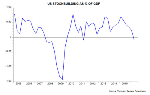 2) The US three- to five-year Kitchin stockbuilding cycle is probably at or near a low. Downswings in this cycle are associated with US / global economic slowdowns (e.g. 2011-12) or recessions if they coincide with weakness in the Juglar business investment and / or Kuznets housing cycles (e.g. 2008-09) – see previous post for more discussion. The change in inventories subtracted 0.8 percentage points from GDP growth in the year to the second quarter, turning negative in that quarter, suggesting that the current downswing is complete – second chart.
