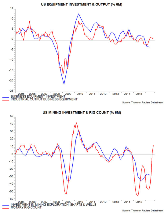 3) The US seven- to 11-year Juglar business investment cycle appears to be entering another expansion phase following a mid-upswing pause partly due to the oil bust. The cycle last bottomed in 2009 and is scheduled to reach another low between 2016 and 2020. A late date is now more likely, with recent data signalling a recovery in equipment and mining investment – third and fourth charts.