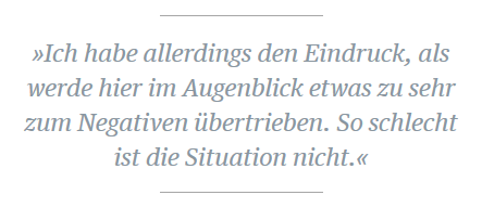Über Gefühle lässt sich nicht streiten. Kapital ist bekanntlich scheu wie ein Reh. Es ist klar, dass es auf eine so starke Häufung von Unsicherheiten reagiert. Dies umso mehr, als die Erfahrung des letzten Jahres lehrt, wie falsch die gängigen Wahlprognosen sein können. Ich habe allerdings den Eindruck, als werde hier im Augenblick etwas zu sehr zum Negativen übertrieben. So schlecht ist die Situation nicht.