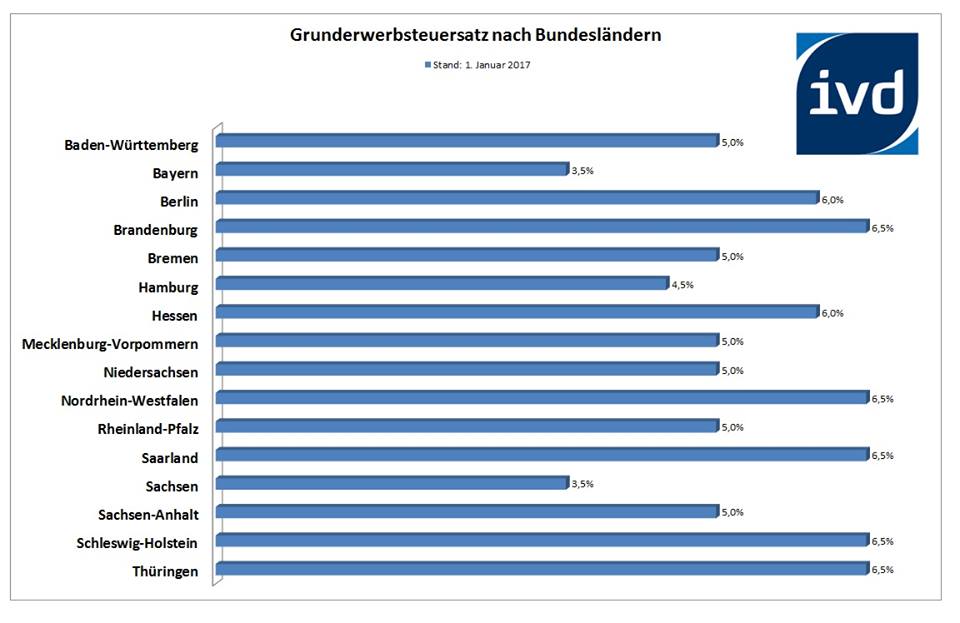 Ein Nebeneffekt des Baubooms: Über Steuern und Gebühren fließt immer mehr Geld in die Kassen der Länder und Kommunen – zumal einige Länder den Satz für die Grunderwerbsteuer bereits angehoben haben, während andere nun noch mit Erhöhungen nachziehen und auch viele Kommunen neue Gebührenerhöhungen planen. So belaufen sich IVD-Schätzungen zufolge die aus dem Branchenwachstum resultierenden Zusatzeinnahmen aus der Grunderwerbsteuer auf 12,4 Milliarden Euro. „Der Staat profitiert von einem immer höheren Grunderwerbsteueraufkommen. Allein die letzten Erhöhungen der Grunderwerbsteuer haben den Ländern 2016 ein Einnahmeplus von 10,2 Prozent auf 12,4 Milliarden Euro verschafft“, rechnet IVD-Chef Michael Schick vor. „Vor diesem Hintergrund ist es umso weniger gerechtfertigt, dass immer mehr Bundesländer die Grunderwerbsteuer auf den Höchstsatz von 6,5 Prozent anheben. Das erschwert gerade Schwellenhaushalten den Zugang zu selbstgenutztem Wohneigentum und somit einer kapitalgedeckten Altersvorsorge“, so Schick.