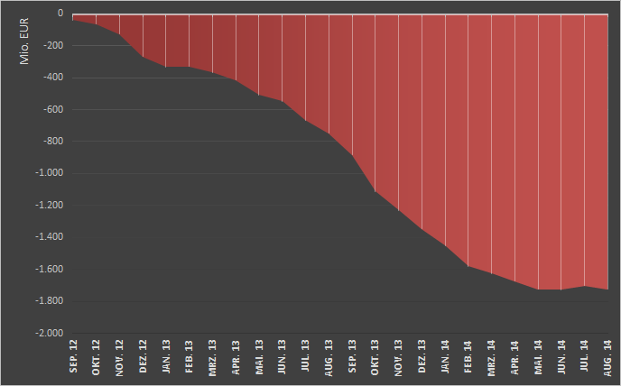 Nachdem der Drawdown des Fonds nun schon seit Juni 2012 anhält, scheinen immer mehr Investoren das Handtuch zu werfen. Ein Blick auf die Abflüsse der letzten zwei Jahre verdeutlicht dies.