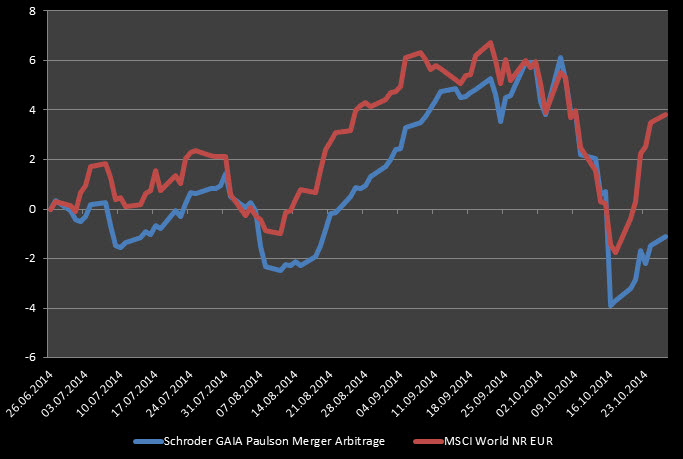 Für den aufmerksamen Leser von „The Greatest Trade Ever“, wo die Geschichte von Paulson & Co. detailliert aufbereitet wird, nicht wirklich überraschend. Hatte doch die Kernexpertise von John Paulson historisch eigentlich stets in den Bereichen Event Driven bzw. Merger Arbitrage gelegen. Umso erfreuter dürften viele Investoren gewesen sein, dass mit dem Schroder GAIA Paulson Merger Arbitrage seit Juni 2014 auch diese Paulson-Strategie für Retail-Investoren zugänglich gemacht wurde.