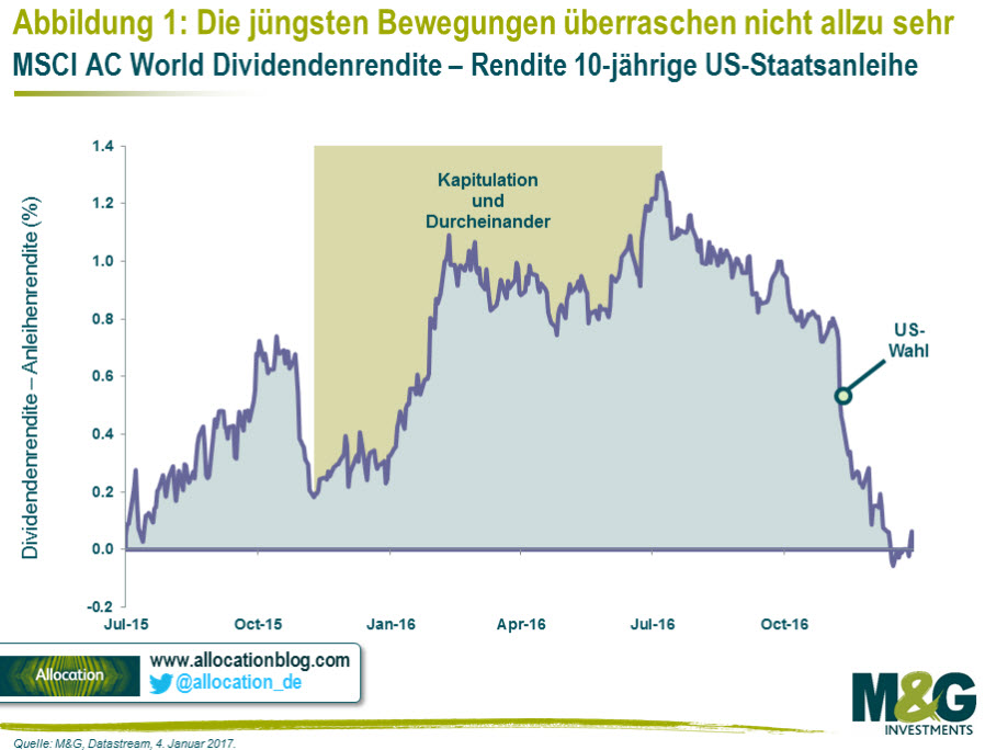 Tatsächlich bewahrheitete sich dies im Jahr 2016. Das für Anleihen und „sichere Anlagen“ zuträgliche und für Wachstum pessimistische Umfeld der ersten Jahreshälfte drehte sich drastisch Mitte des Jahres – deutlich vor Trump.