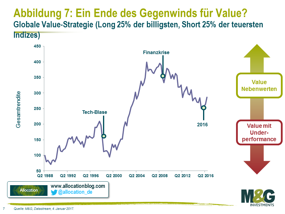 Das Muster innerhalb der Anlageklassen hat sich ebenfalls verändert. Im letzten Jahr kam es zu einer relativ starken Periode für Value-Strategien, d.h. sowohl innerhalb als auch über die Indizes hinweg (Abb.7 zeigt die Erträge beim Kauf einer Auswahl an billigen und Verkauf teurer Märkte sowie das Rebalancing in jedem Jahr).