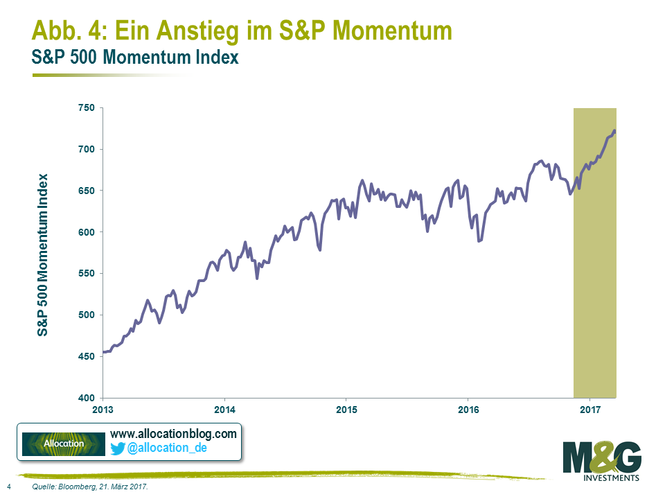 Dessen ungeachtet sollte alleine die Tatsache, dass viele Investoren und Kommentatoren nach Anzeichen von Selbstzufriedenheit suchen zumindest von daher eine beruhigende Wirkung haben, da eine zu Blasen führende Euphorie heutzutage keinen dominierenden Einfluss hat.