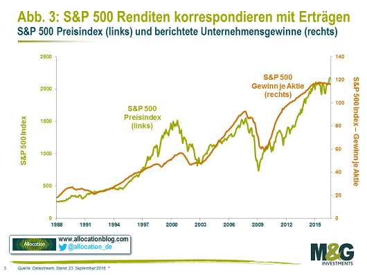 Anstatt, wie viele glauben, durch schnelles Geld aufgeblasen zu sein, reflektiert die Wertentwicklung des S&P 500 zu einem gewissen Teil die zeitlich verzögerte Antwort auf einen deutlichen Anstieg der aggregierten Unternehmensgewinne seit der Finanzkrise.