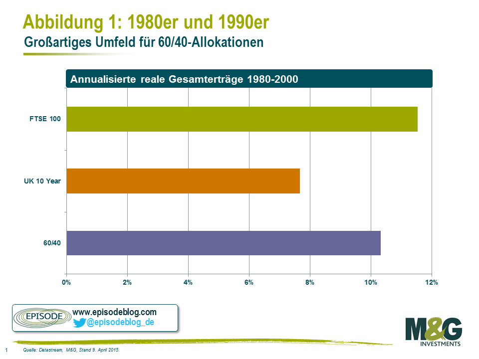 Die historischen Allokationen der institutionellen Anleger wie beispielsweise Pensionsfonds offenbaren die sich verändernde Investmentlandschaft. Bis zu den 1990er Jahren hielten Pensionsfonds in der Regel eine Mischung aus Aktien und Anleihen, deren Großteil aus Großbritannien kamen. Die Mischung variierte, doch gewann eine Ratio von 60/40 (60% Aktien/40% Anleihen) zunehmend an Popularität und wurde zur Norm in den meisten Multi-Asset-Portfolios.