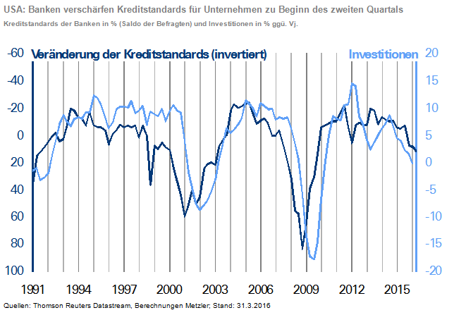 Seit der Finanzmarktkrise hat sich der Beitrag der Innovationen gegenüber dem langfristigen Durchschnitt auf 0,6 %-Punkte halbiert, während der Beitrag der Investitionen sogar negativ geworden ist. Im Endeffekt reichen die staatlichen Investitionen derzeit nicht mehr aus, um die Infrastruktur aufrechtzuerhalten. Darüber hinaus halten sich US-Unternehmen mit einer Erhöhung der Investitionsausgaben nach wie vor zurück. Die Umfrage der US-Notenbank bei den Geschäftsbanken zu Beginn des zweiten Quartals zeigt, dass die Geschäftsbanken ihre Kriterien für die Kreditvergabe an Unternehmen erneut verschärft haben, sodass die Investitionen auf absehbare Zeit allenfalls stagnieren dürften.