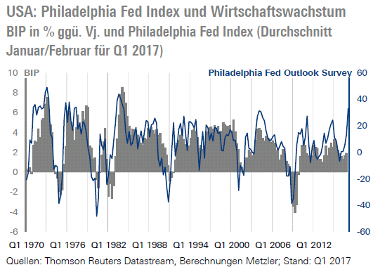 Derzeit ist die globale Wirtschaftspolitik jedoch eher auf Stimulus denn auf Strukturreformen ausgerichtet. Und die Stimulusmaßnahmen scheinen dabei zu greifen (vielleicht sogar zu gut), wie die kräftig steigenden Frühindikatoren für die Bruttoanlageinvestitionen im gesamten OECD-Raum zeigen. Ein Beispiel von vielen ist der merkliche Anstieg des Philadelphia Fed Index im Februar auf den höchsten Stand seit Anfang der 1980er Jahre. Der Philadelphia Fed Index ist besonders aussagekräftig, da er ein überraschend guter Frühindikator für das US-Wirtschaftswachstum ist.