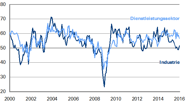 Der ökonomische Ausblick in den USA ist nach wie vor geprägt von großer Unsicherheit. Die Auftragseingänge für Investitionsgüter gingen zuletzt deutlich zurück, sodass sich die Investitionsschwäche des vierten Quartals auch im ersten Quartal 2016 fortsetzen dürfte.
