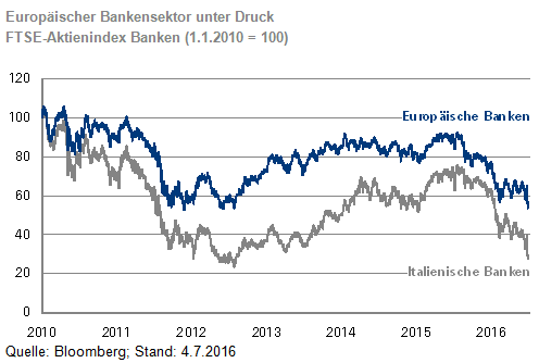 Immerhin zeigt eine Blitzumfrage des Deutschen Industrie- und Handelskammertages (DIHK) nach dem Brexit-Referendum, dass die deutschen Unternehmen ihre Investitionsausgaben in Deutschland nicht ändern und auch keine Mitarbeiter entlassen wollen. Die deutschen Unternehmen erwarten jedoch einen spürbaren Rückgang ihrer Exporte nach Großbritannien, geringe Direktinvestitionen in Großbritannien und Entlassungen bei ihren Tochterunternehmen auf der Insel. Ein erster Blick auf die Industrieproduktion (Mittwoch) in der Eurozone im Mai dürfte zwar aufgrund des vermutlichen Rückgangs von etwa 1,0 % zum Vormonat enttäuschen. Ein zweiter Blick zeigt aber, dass es dieses Jahr im Mai viele Feiertage gab, was die Produktionsdaten saisonal verzerrt haben könnte. Erste veröffentlichte Daten der deutschen Automobilindustrie zeigen, dass die Produktion im Juni stark expandiert ist. Die Inflation (Freitag) dürfte sich im Rahmen der ersten Schätzung von Eurostat bewegen.